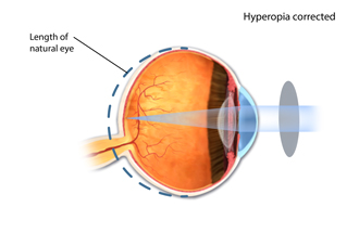 Eyeglasses or contact lenses may help to correct or improve farsightedness by adjusting the focusing power to the retina. Corrective surgery may also help by changing the shape of the cornea to a more spherical, round shape instead of an oval shape.