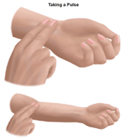 • Using the first and second fingertips, press firmly but gently on the arteries until you feel a pulse.