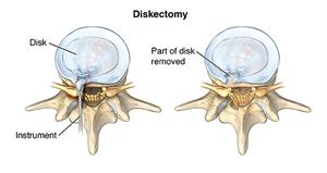 Some people need more advanced treatments. Your healthcare provider might suggest injections of steroid medicine in the area where a disk is herniated. Some people might benefit from surgery. During a surgical procedure called a discectomy, the surgeon removes all or part of the disk that is pressing on a nerve root. Along with this procedure, the surgeon may need to remove parts of some vertebrae or fuse vertebrae together.