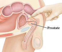 Digital rectal exam (DRE). In this exam, the healthcare provider puts a lubricated, gloved finger into the rectum to check the size of the prostate and feel the surface through the bowel wall for hard lumps or abnormal areas. Only part of the prostate surface can be felt during the exam. A DRE is best performed with a PSA blood test.
