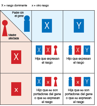 Los genes se heredan de nuestros padres biológicos de maneras específicas. Uno de los tipos básicos de transmisión hereditaria de nuestros genes se conoce como herencia dominante ligada al cromosoma X.
